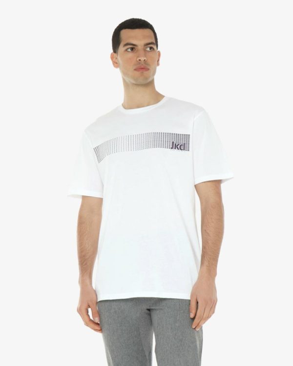 T-shirt a maniche corte Jaked. Si adatta al ritmo della città e al respiro dell’outdoor, grazie alla sua vestibilità regolare che garantisce libera circolazione in ogni situazione. La fascia orizzontale sul petto con il punto Jaked è il tuo sigillo di qualità e stile, mentre il tessuto resistente alle pieghe mantiene il look impeccabile tutto il giorno. Vestila, vivila, sii sempre pronto per la nuova avventura che ti attende.